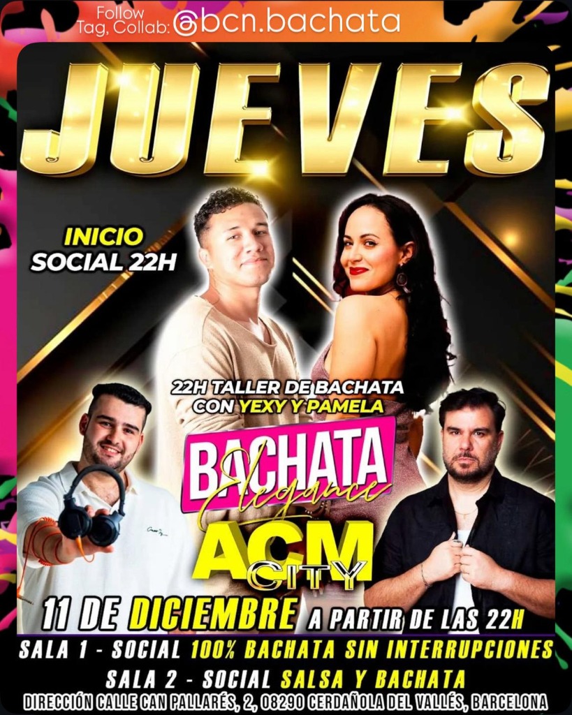 Don't miss the chance to be part of this unique experience. Connect with us through our social media at instagram.com/bcn.bachata and make sure to keep up with the rhythm of the night. We can't wait to dance until dawn with you! 🌙✨