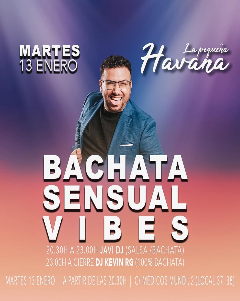 🎵 The party will feature the incredible performance of JAVI DJ, who will take you on a sonic journey from 20:30 to 23:00, mixing the best salsa and bachata rhythms. Afterwards, DJ KEVIN RG will take over to close the night with a 100% bachata set that will make you vibrate until dawn. 🎶 Don’t miss the chance to enjoy a unique experience surrounded by friends and great music.