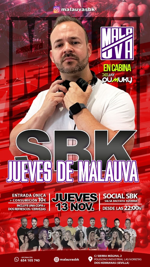 🎉 Get ready for an unforgettable night at the JUEVES DE MALAUVA! 💃 This social event will take place at the vibrant SOCIAL SBK, where energy and passion for dance blend in a cozy atmosphere. 🌟 Come enjoy contagious rhythms that will make your feet move and feel the music in every corner.