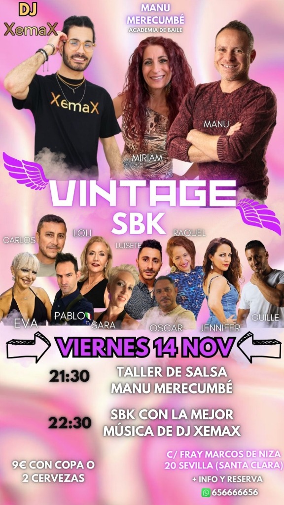 🎉 Get ready for an unforgettable night at VINTAGE SBK! 💃 This event will transport you to a vibrant and energetic atmosphere where music and dance merge into a magical experience. 🌟 Come enjoy the best salsa, bachata, and kizomba in an exceptional venue that will make you feel right at home.