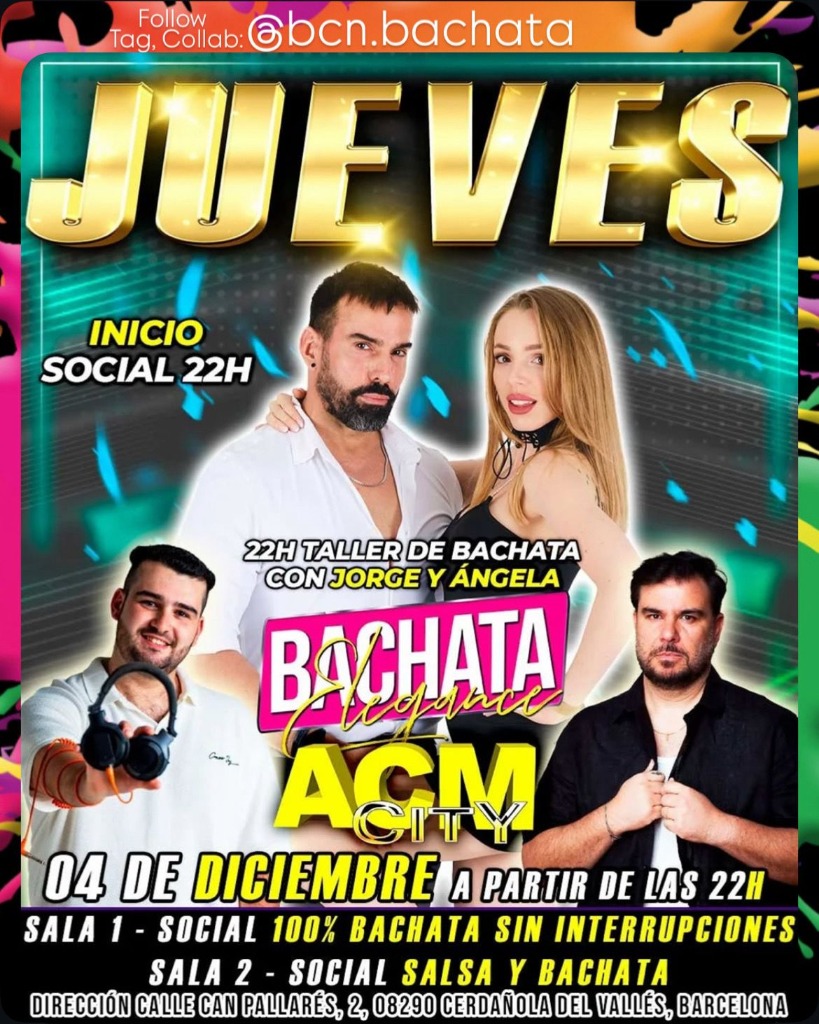 🎉 Welcome to BACHATA Elegance! 🌟 Get ready for a magical night at ACM CITY, where music and dance intertwine in an unforgettable experience. 💃✨ Here, every step tells a story and every turn awakens hidden passions.