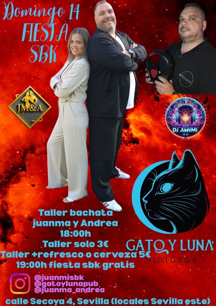 🎉 Get ready for an unforgettable night at the FIESTA SBK! 💃 This vibrant event will take place at the charming Gato y Luna, where the rhythm of salsa, bachata, and kizomba will envelop you. 🌟 Feel the energy on the dance floor as you immerse yourself in an atmosphere filled with joy and passion for Latin music.