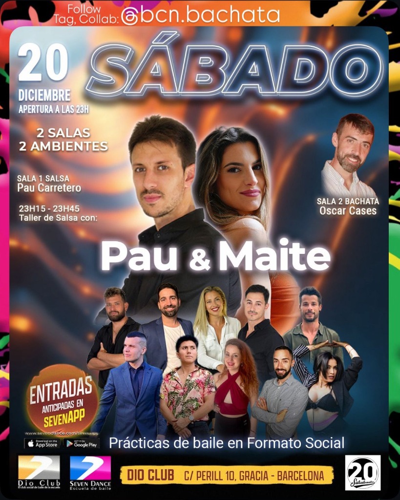 🎶 Enjoy exceptional workshops with renowned artists like Pau Carretero and Maite, who will guide you through steps and movements that will make you shine on the dance floor. Plus, don’t miss Oscar Cases in room 2, where bachata will envelop you with its sensuality. It’s the perfect opportunity to learn and have fun at the same time! 🎭