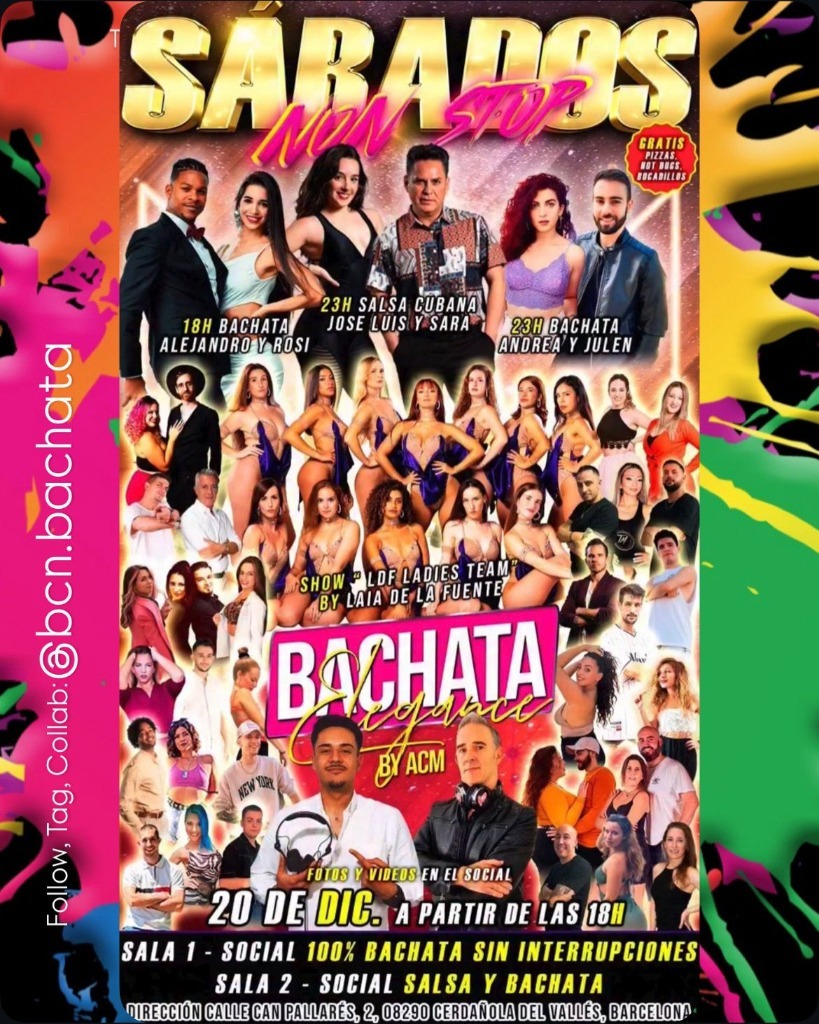 🎉 Welcome to SÁBADOS NON STOP at Bachata Elegance! 💃 Get ready for a night full of rhythm and passion, where the energy of bachata and salsa will take over the dance floor. This is the perfect place to enjoy, learn, and connect with other dance lovers in a vibrant and welcoming atmosphere. 🌟