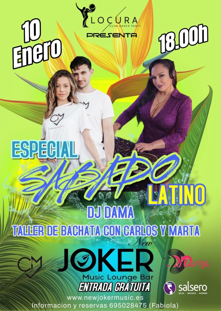 🎉 Get ready for an unforgettable night at SÁBADO LATINO at the New JOKER Music Lounge Bar! 🌟 This event is the perfect haven for lovers of bachata and Latin culture. Come enjoy a vibrant atmosphere, full of energy and rhythm, where every step will bring you closer to the dance floor. 💃