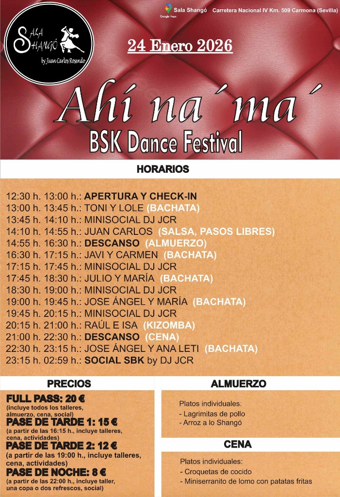 Un dรญa repleto de ๐ฏ๐ฎ๐ถ๐น๐ฒ, con ๐ณ ๐๐ฎ๐น๐น๐ฒ๐ฟ๐ฒ๐, ๐บ๐ถ๐ป๐ถ๐๐ผ๐ฐ๐ถ๐ฎ๐น๐ฒ๐, almuerzo, cena, social... Y para rematar concurso de bachata โผ๏ธ