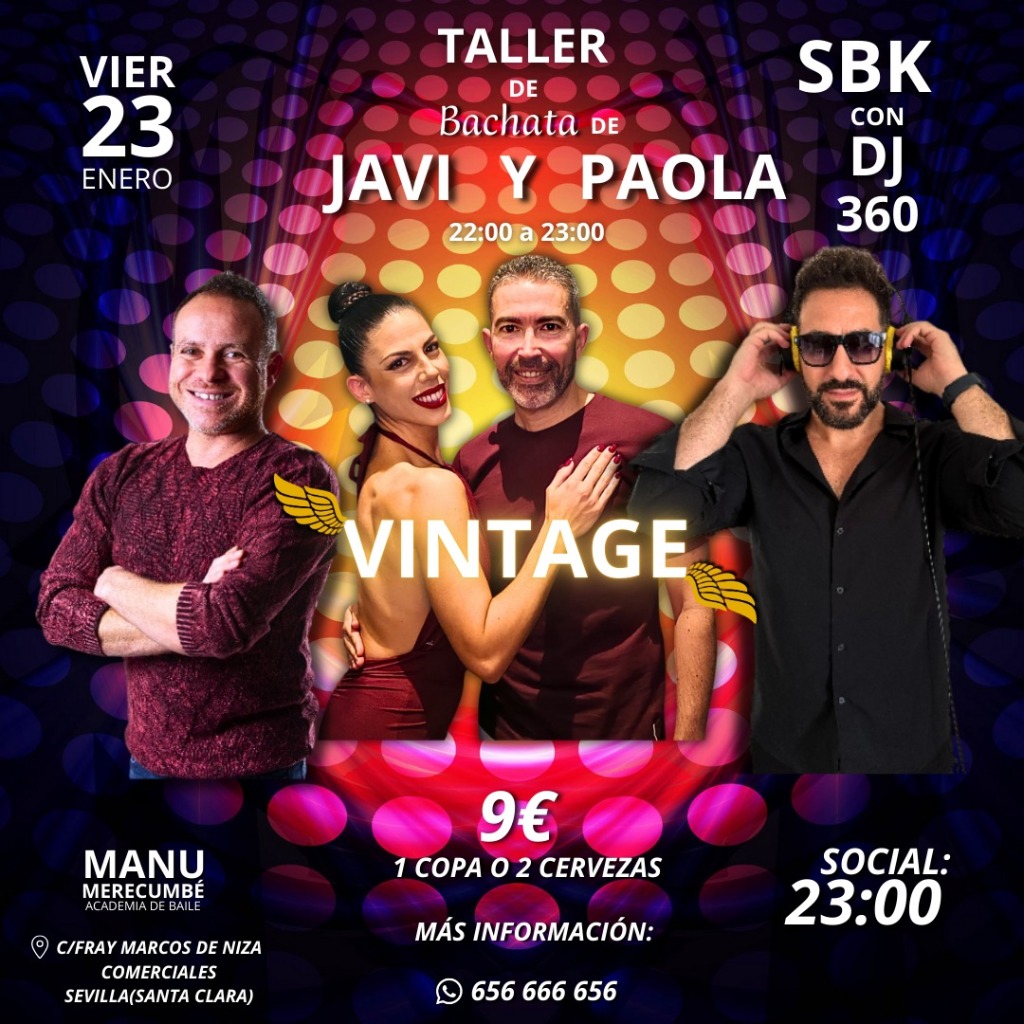 🎉 Get ready for a magical night at the Bachata WORKSHOP by JAVI AND PAOLA in VINTAGE! 💃 This event is the perfect opportunity to immerse yourself in the vibrant rhythm of salsa, bachata, and kizomba. Imagine the atmosphere filled with energy, laughter, and the best music that will make you move your feet nonstop. 🌟