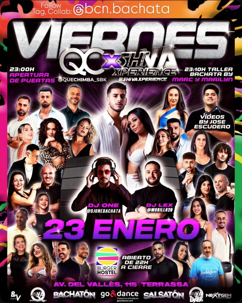 On this special night, you will enjoy unique workshops with the talented Marc and Marilyn, who will guide you in the art of bachata. 🎶 Additionally, you will feel the contagious energy of our DJs, DJ One and DJ Lex, along with the performance of Jose Escudero, who will make you groove with their Latin rhythms. You won't want to miss this party full of rhythm and fun! 🎵