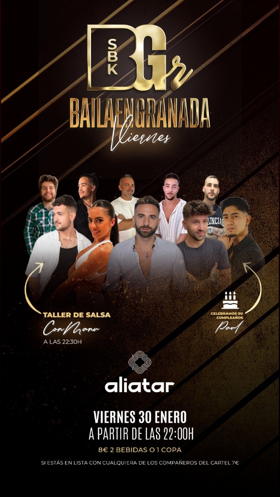 🎉 Get ready for a magical night at SBK Baila en Granada! 💃 This promising event will take place at the vibrant Aliatar, where the energy of salsa, bachata, and kizomba will fill the air. 🌟 Come immerse yourself in an atmosphere full of rhythm and passion, where every step will bring you closer to the joy of dancing.