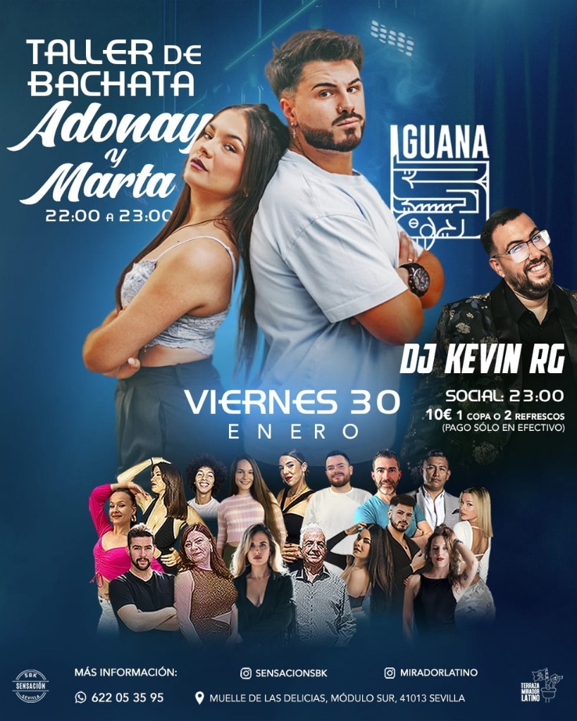 On this special night, you'll have the chance to learn from the best. Adonay and Marta, bachata masters, will guide you through sensual steps and captivating movements that will make your heart beat to the rhythm of the music. 🎶 Plus, our DJ KEVIN RG will be in charge of the mixes, ensuring you don't stop dancing. 🎵