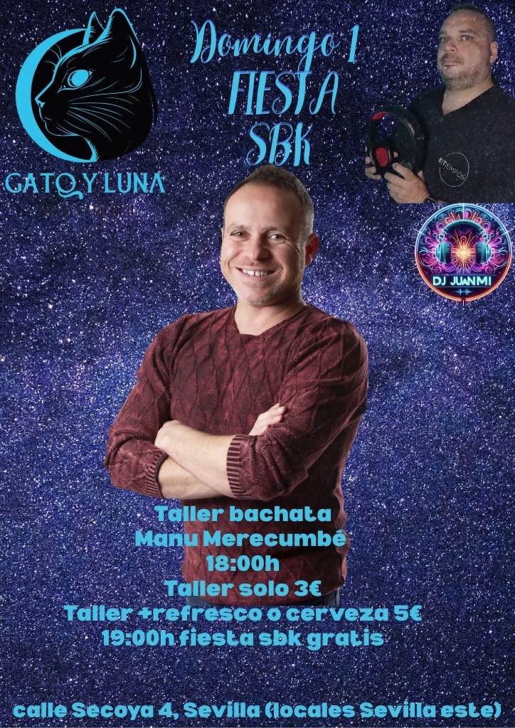 🎉 Get ready for an unforgettable night at the Fiesta SBK en Gato y Luna! 💃 This event is designed for all lovers of Latin dance, where energy and rhythm merge in a vibrant and welcoming atmosphere. Come enjoy a unique experience, filled with music and fun, in a place that will make you feel at home. 🌟