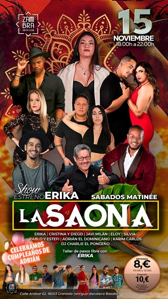 🎉 Welcome to LA SAONA! Get ready for a magical night at Zambra Night Club, where the energy of salsa, bachata, and kizomba will wrap you in a warm and vibrant embrace. 💃 Feel how the rhythm takes over your body as you enjoy an atmosphere full of passion and joy. 🌟