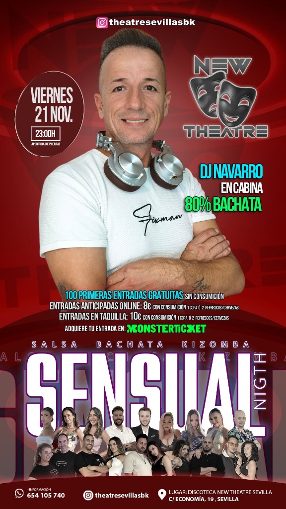 🎉 Get ready for a night full of rhythm and passion at SENSUAL NIGHT! 💃 Come to the Discoteca New Theatre Sevilla and immerse yourself in an electrifying atmosphere where the music will take you to another level. 🌟