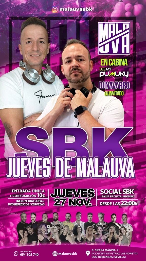 🎉 Get ready for an unforgettable night at JUEVES DE MALAUVA! 💃 This vibrant event will take place at SOCIAL SBK, where the energy and rhythm of salsa, bachata, and kizomba will wrap you up from the very first moment. 🌟