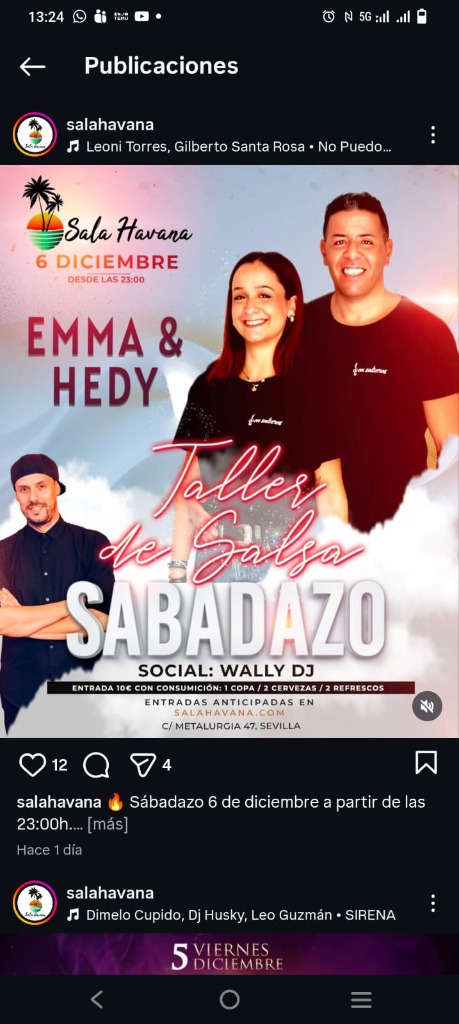 🎉 Get ready for an unforgettable night at the SABADAZO! 🌟 This salsa event will transport you to a world full of rhythm and energy at the Sala Havana. Come and enjoy a vibrant atmosphere where music and dance intertwine, creating a magical experience you won’t want to miss. 💃