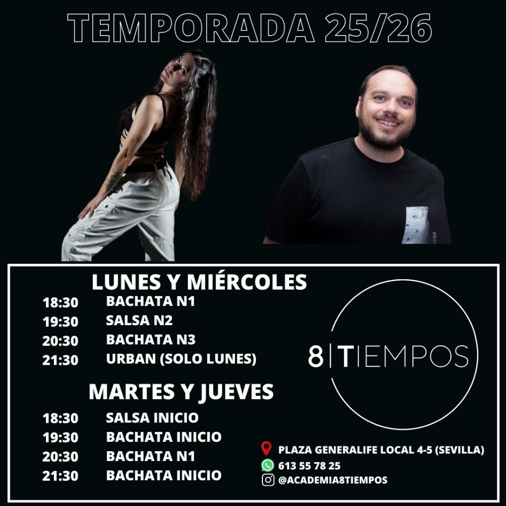 Tras muchos años trabajando para otros, la Escuela de Baile 8 Tiempos surge como un proyecto al que poder dedicarme por entero. Pienso que cuando entras en el mundo del baile te llena lo suficiente como para seguir en él el resto de tu vida. Simplemente he optado por dedicarle, además, todo mi esfuerzo.